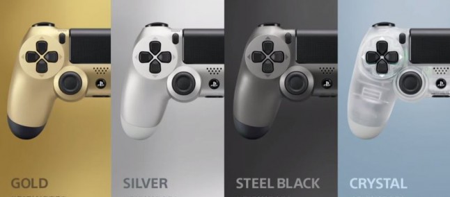 Sony ha annunciato nuove colorazioni sia per PS4 che per il Dualshock 4, per quest’ultimo nella fattispecie parliamo dei colori visibile nell’immagine sottostante, con colorazioni Gold, Silver, Steel Black e Crystal, con le prime due che riprendono le colorazioni più in voga nel settore degli smartphone e che verranno distribuite anche in Occidente, mentre le restanti due, almeno per il momento, saranno ad appannaggio solo del Giappone. Ricordiamo anche che è da pochi giorni disponibile sul nostro territorio il Dualshock in versione 20° anniversario.