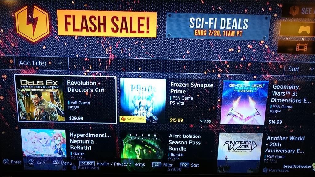 Grazie ad una fuga di notizie del PlayStation Store, siamo venuti a conoscenza dell’inizio del PSN Flash Sale, il quale avrà inizio negli Stati Uniti D’america a partire da venerdì. Il tema dello sconto saranno i giochi Sci-Fi, di seguito potete trovare la lista completa dei giochi che saranno scontati, mentre per il prezzo dovrete attendere l’inizio dell’evento.