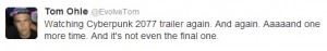 Tom Ohle su twitter ha giocato un po’ con l’hype dei suoi followers twittando quanto fosse bello il trailer di Cyberpunk 2077. A una chiara domanda su quando sarà disponibile il video in questione, il buon Ohile ha risposto che potremo mettere i nostri occhi su di esso, nel corso della prossima settimana.