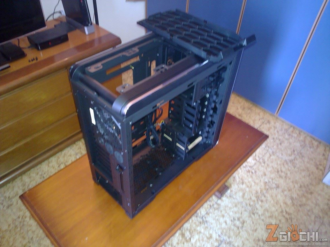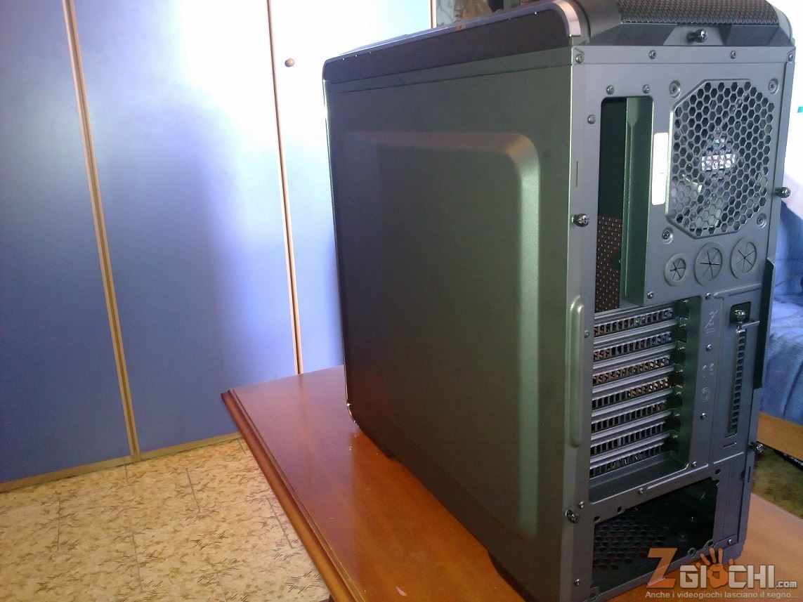 Sui due lati abbiamo una semplice bombatura estetica per quello destro, mentre sulla sinistra il Case si distingue in due differenti versioni, una con finestra trasparente ed una più economica che lascia spazio per l’alloggio di due ventole da 120mm oppure un ventolone da 180/200mm.
